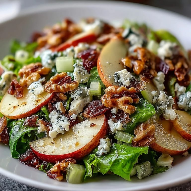 Save A refreshing winter salad featuring crisp apples, crunchy walnuts, and a tangy vinaigrette — perfect as a light appetizer or side dish. This simple yet elegant dish brings together seasonal flavors with a delightful crunch that makes it a standout on any table.