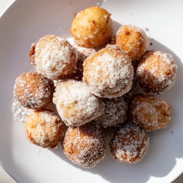 Save My mom used to make doughnut holes on lazy Sunday mornings, and I'd watch them puff up in the oil like tiny golden clouds. There's something magical about how a simple ball of dough transforms in hot oil—it takes maybe three minutes and suddenly you have this crispy, tender treasure that tastes nothing like the flat dough it started as. The first time I made them myself, I burned half a batch because I wasn't paying attention, but the ones that turned out golden brown disappeared so fast I barely got to taste one. Now every time I make them, I'm transported back to that kitchen, the smell of nutmeg and vanilla filling the air, and the pure joy of biting into something warm and sweet right out of the pan.
