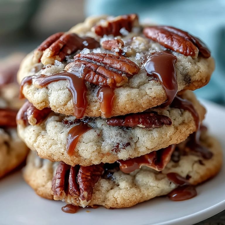 Transform these cookies into Salted Caramel Pecan Cookies by sprinkling flaky sea salt over the caramel swirls before baking. For a chocolate version, add ½ cup of dark chocolate chips along with the pecans. Substitute walnuts or hazelnuts for pecans if preferred, or try a mix of different nuts for varied texture. Create a bourbon-spiked version by adding 1 tablespoon of bourbon to the dough along with the vanilla. For a gluten-free option, use a 1:1 gluten-free flour blend in place of all-purpose flour. Make them extra indulgent by sandwiching two cookies together with additional caramel sauce or dulce de leche. For smaller cookies, use a teaspoon instead of tablespoon for portioning and reduce baking time to 9–10 minutes.