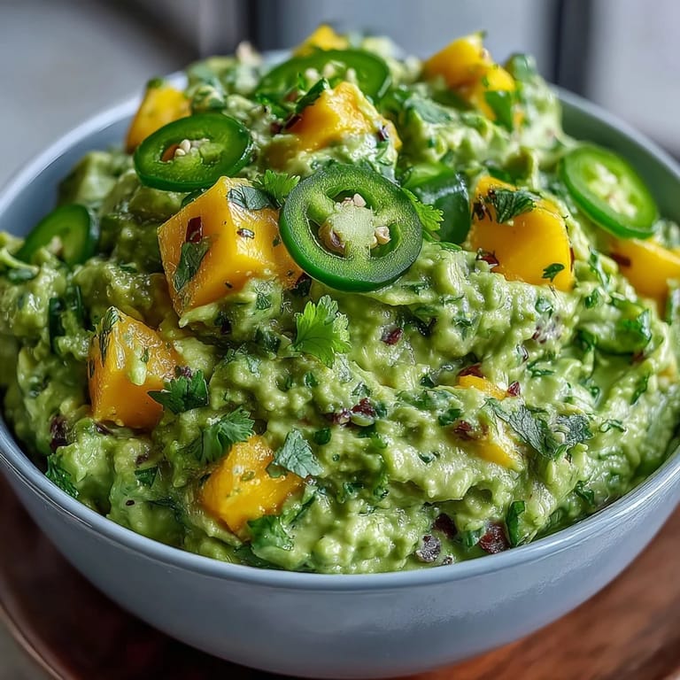 Save My neighbor showed up at a Cinco de Mayo potluck with a mysterious covered dish, and when she lifted the lid, this jewel-toned guacamole practically glowed under the kitchen lights. The first bite hit me like a flavor surprise—creamy avocado, bright lime, then that unexpected sweetness of mango followed by a jalapeño kick that made everyone pause for a second before reaching for more. She laughed and said she'd thrown it together in ten minutes, which somehow made it even better because I realized I'd been overthinking guacamole my whole life.