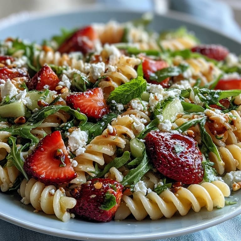 Save I was once lured by the scent of freshly cut basil drifting through my open kitchen window as the first warm breeze of spring rolled in. At that exact moment, the idea of pasta salad suddenly felt appealing, which isn’t something I usually crave when the sun is out. When strawberries arrived from the market bursting with flavor and arugula looked impossibly green, my inspiration snapped into focus. With a hodgepodge of Mediterranean staples and bright produce, I pieced together this salad, and I still remember how the mix of sweet and tangy surprised me. This dish became my go-to spring lunch whenever I needed something vibrant yet quick.